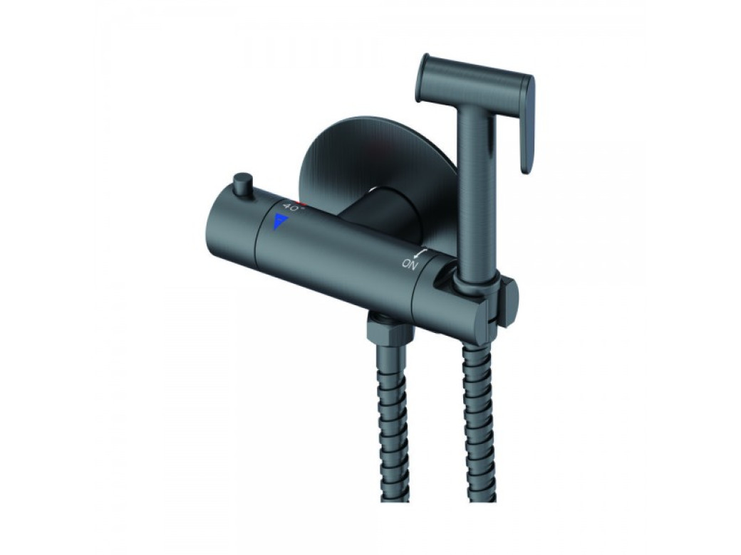 Смеситель с гигиеническим душем, термостат, латунь, оружейная сталь Gerhans K15382D-1