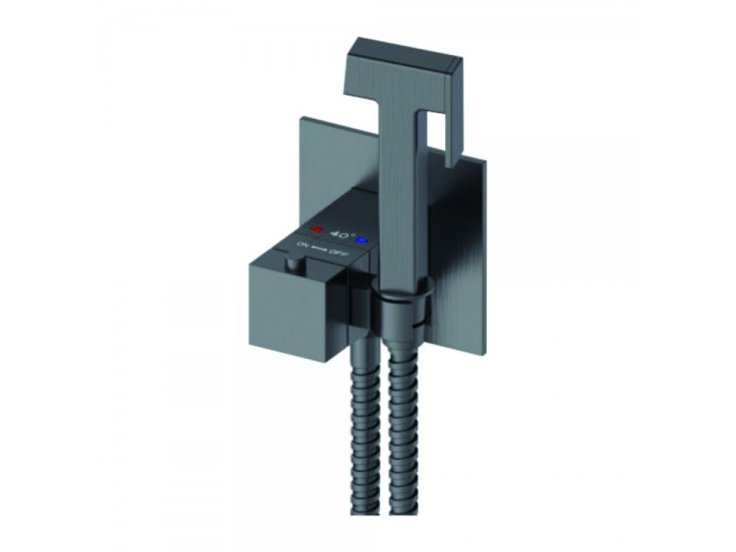 Смеситель с гигиеническим душем, термостат, латунь, оружейная сталь Gerhans K15383D