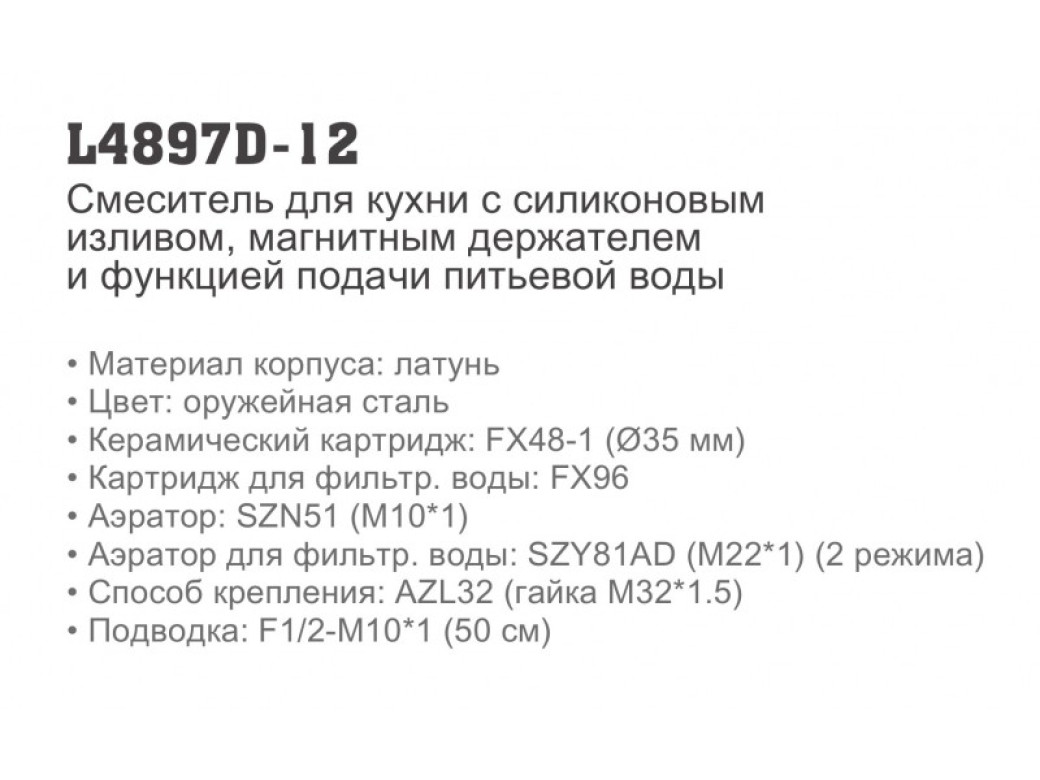 Ledeme L4897D-12 Смеситель для кухни с подключением к фильтру, латунь, оружейная сталь