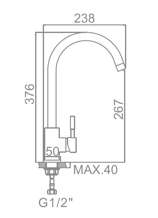 Смеситель для кухни, нержавеющая сталь, сатин W4998-3 Wisent
